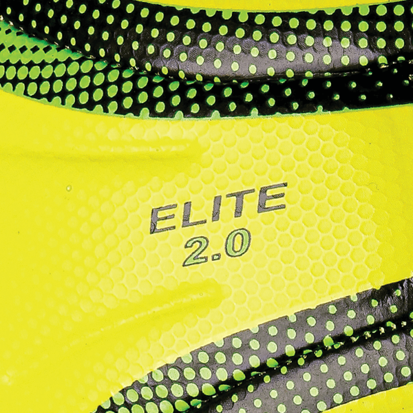 The fluo yellow Elite 2.0 has been designed to create a consistent shape and reduce water intake. They are also embossed with grooves to ensure a consistent flight through the air. The soft touch foam backing offers a premium feel and better control. The textured abrasion resistant surface makes them highly durable and reliable throughout the season.